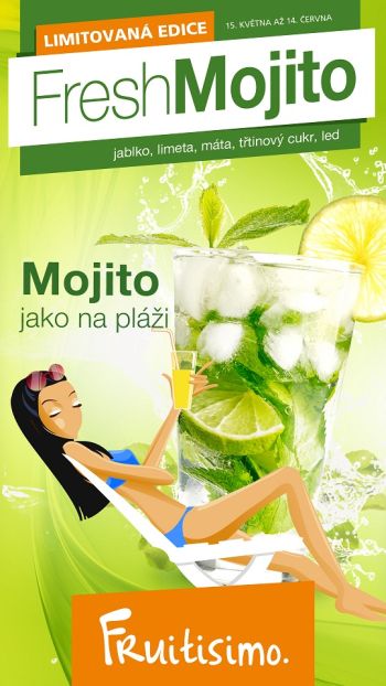Od 15. května do 14. června jsme pro vás připravili limitovanou edici - osvěžující drink Fresh Mojito. Jablko, limetka, třtinový cukr, led a hlavně spousta čerstvé máty! S přívalem teplého počasí je tento drink skvělým osvěžením a pohlazením Vašich chuťových buněk. Přijďte si dát naše Fresh Mojito, budete se cítit jako pláži.