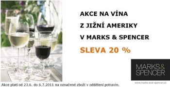 Kupte si výborná vína z jižní Ameriky - nyní v akci se slevou 20 % Nabídka platí na vybraná vína od 23.6. do 6.7.2011 v prodejně Marks & Spencer v oddělení potravin.