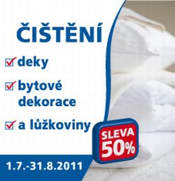 Využijte 50% slevy na čistění dek, bytových dekorací a lůžkovin. Akce platí od 1.7. do 31.8.2011