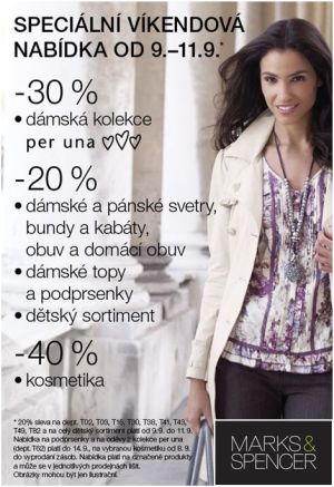 SPECIÁLNÍ VÍKENDOVÁ NABÍDKA OD 9.9. DO 11.9. - SLEVY 20 %, 30 % A 40 % V MARKS & SPENCER