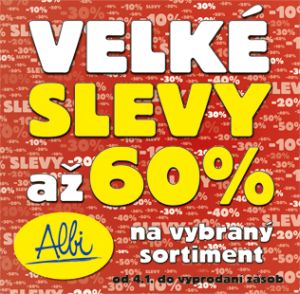 Vánoce jsou za námi a my jsme pro Vás v prodejnách Albi připravili velké povánoční slevy na vybraný sortiment. Navštivte v lednu některou z prodejen Albi a využijte slevy ve výši 20 - 60%. Slevy platí od 4.1.2011 do vyprodání zásob.