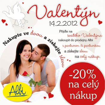 Valentýn v Albi - Nakupte ve dvou a získejte slevuPřijďte na svatého Valentýna nakoupit do prodejny Albi s partnerem či partnerkou a získejte slevu 20% na celý nákup.