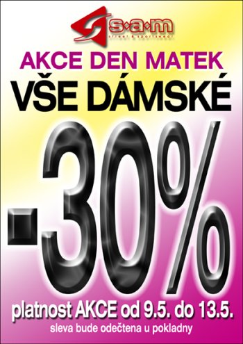 Akce ne Den matek.Vše dámské se slevou 30%.