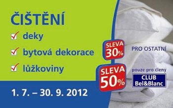 Akční nabídky na čištění bytové dekorace, dek a lůžkovin. Sleva se nevztahuje na čištění koberců, kůží a kožešin.
