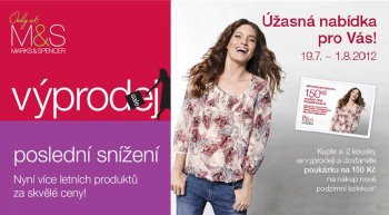 Lákavé letní ceny v Marks & Spencer! Nyní v prodejnách Marks & Spencer ještě více letních produktů za skvělé ceny! A navíc: kupte si minimálně 2 kousky ve výprodeji a dostanete poukázku v hodnotě 150 Kč na nákup nové podzimní kolekce! Akce platí od 19.7. 2012. Více na www.marks-and-spencer.cz a v naší prodejně. Přejeme Vám příjemné nakupování. Váš Marks & Spencer J.