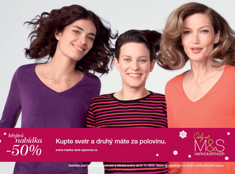 Přijďte a nakupujte za skvělé ceny! Nabídka platí od 24.10.2012 do vyprodání zásob v prodejně M&S na označené produkty. Těšíme se na Vaši návštěvu!