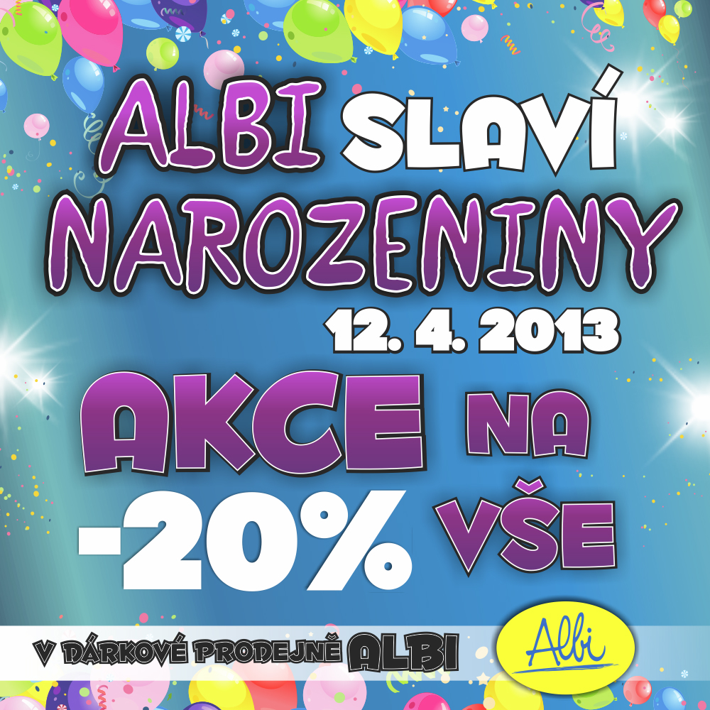 Prodejna Albi v obchodním centru Galerie Fénix slaví páté narozeniny a proto jsme pro vás k této příležitosti připravili velkou akci. V pátek 12. dubna nakoupíte v Albi prodejně vše se slevou 20%.