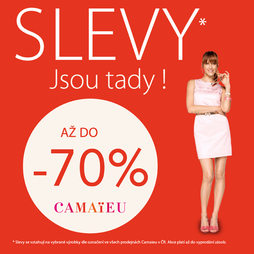 V prodejně Camaieu najdete skvělé kousky až se 70% slevou! Prodejnu Camaieu najdete v 1.patře Nákupní Galerie Fénix Vysočanská. Přijďte včas a vyberte si ten nejlepší kousek právě pro Vás!