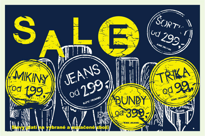 Nevíte, kde jsou bezva slevy? Poradíme vám, u nás v EXE JEANS a to už od zítra 26.7.2013. Kde jinde byste totiž nakoupili jeans od 299 Kč, trika od 99 Kč a mikiny od 199 Kč. Přijďte se o tom přesvědčit do našich prodejen, kterých máme už 35. Jejich seznam najdete na www.exejeans.com/prodejny. Těšíme se na vás, EXE tým