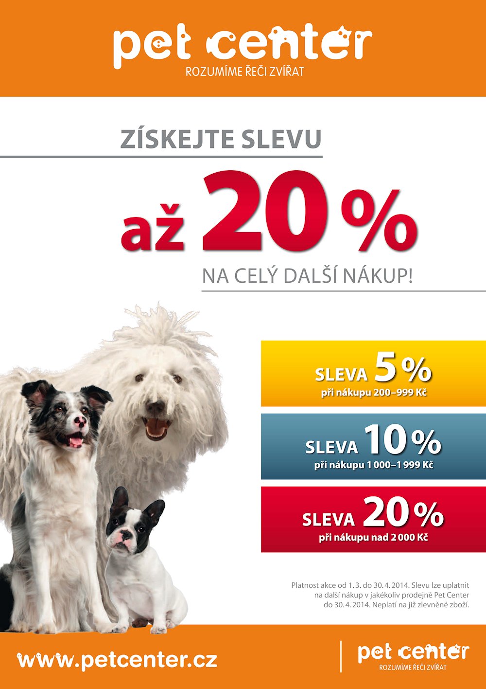 Přijďte nakoupit do Pet Center a získejte slevu až 20 % na další nákup! Více informací najdete na www.petcenter.cz.