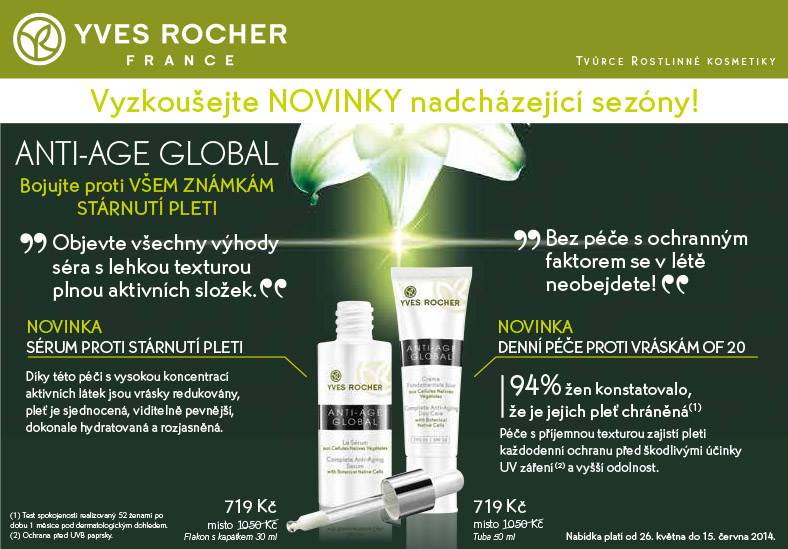 Nabídka platí od 26. května do 15. června 2014 v kamenných obchodech Yves Rocher v ČR. Více informací na www.yves-rocher.cz. Najdete nás také na Facebooku www.facebook.com/YvesRocherCR