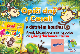 Nechte děti vyrobit masku opice . Za jejich snahu dostanou omalovánky či pexeso. Na konci měsíce vybereme nejbláznivější masku a autora odměníme dárkovou taškou věnovanou partnerem soutěže f.Maner.