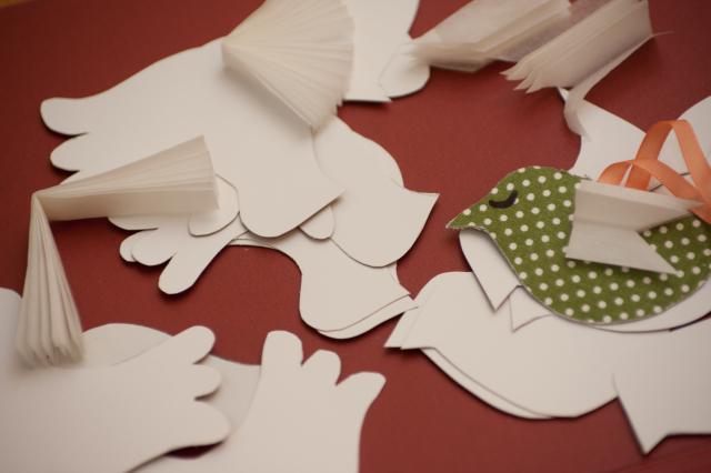 Workshop 7.1.2010 - závěsné holubičky z látky a hedvábného papíru